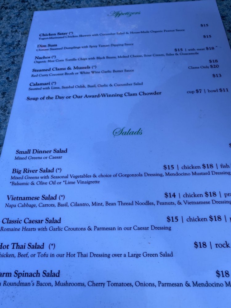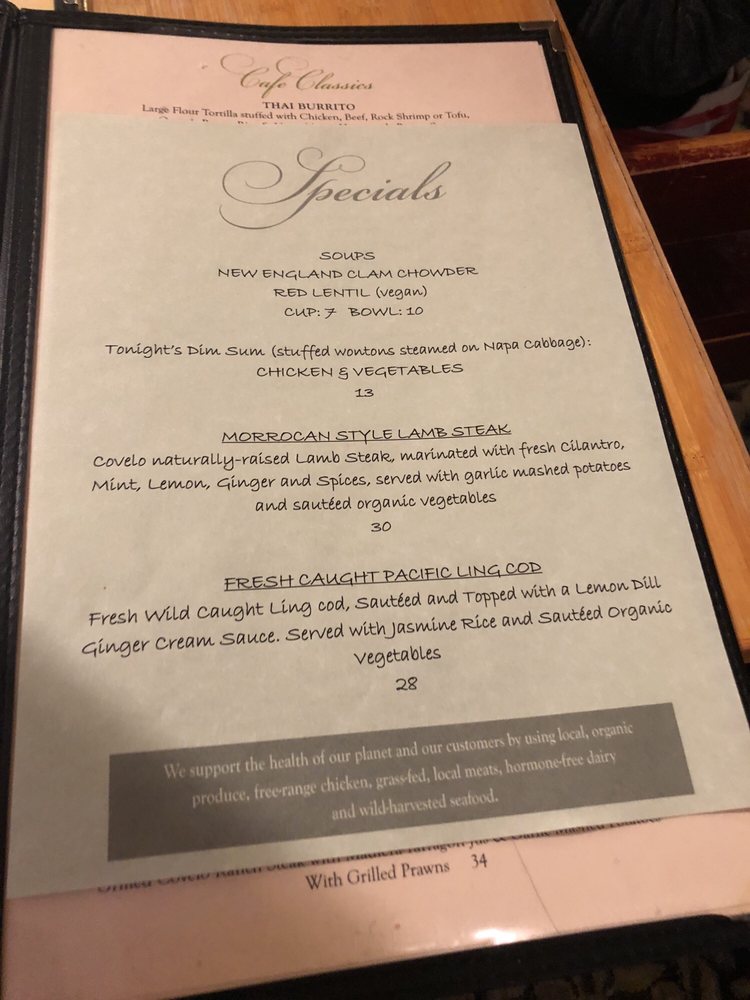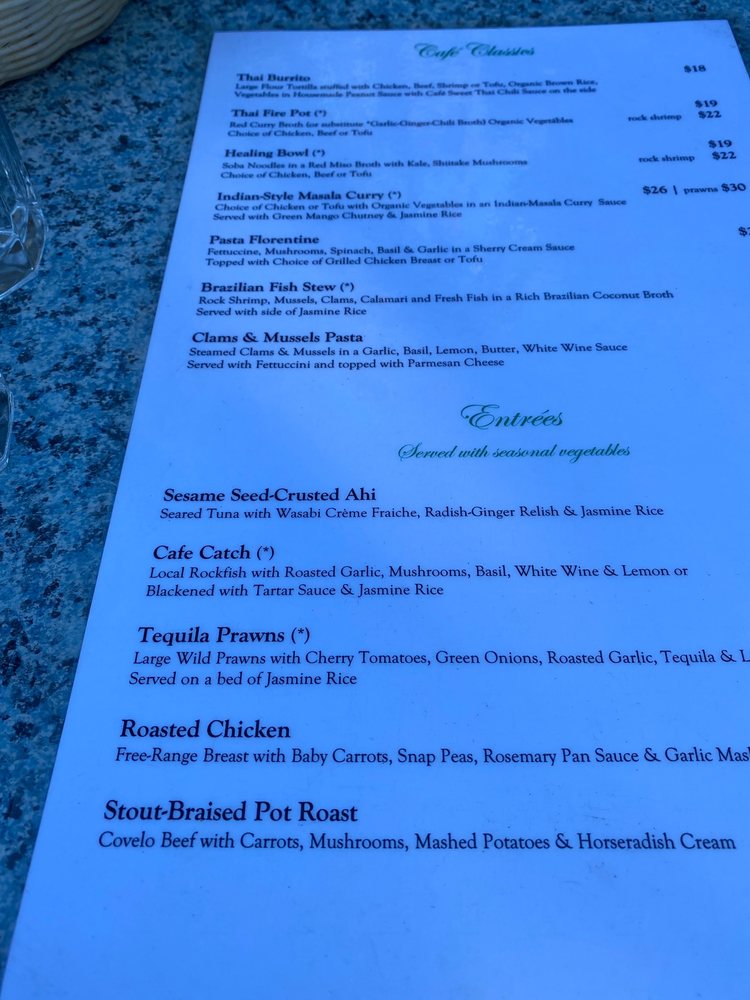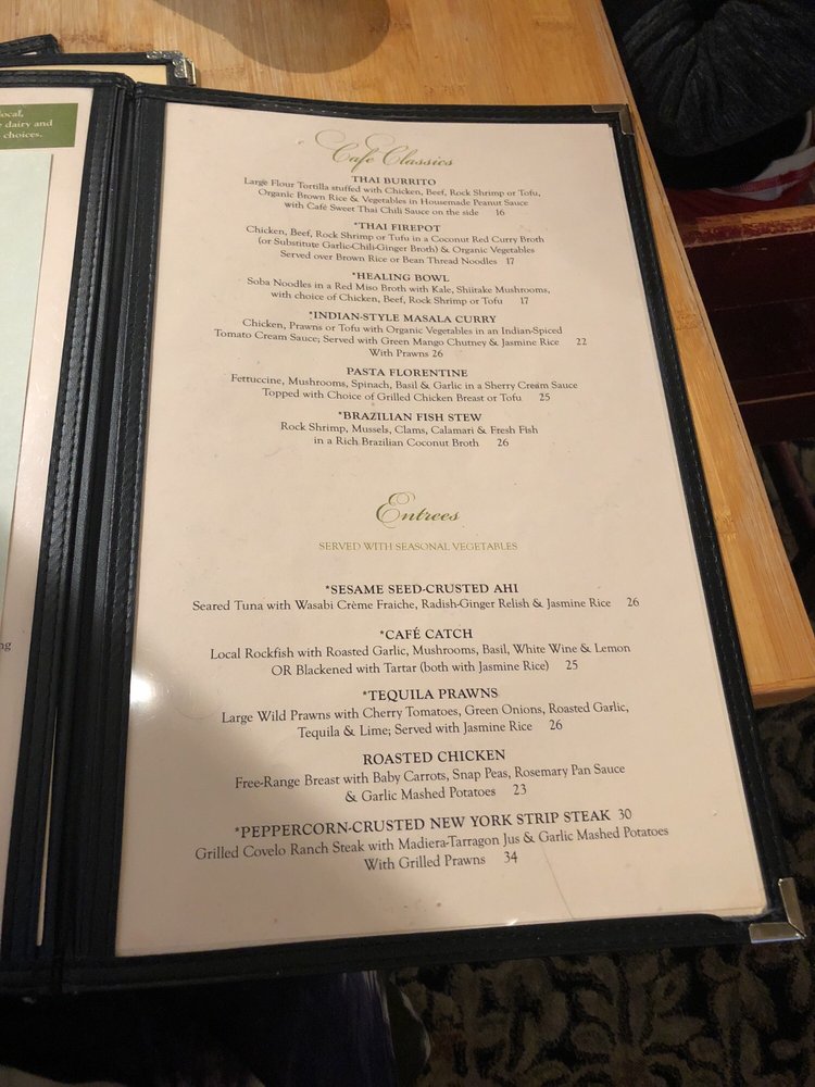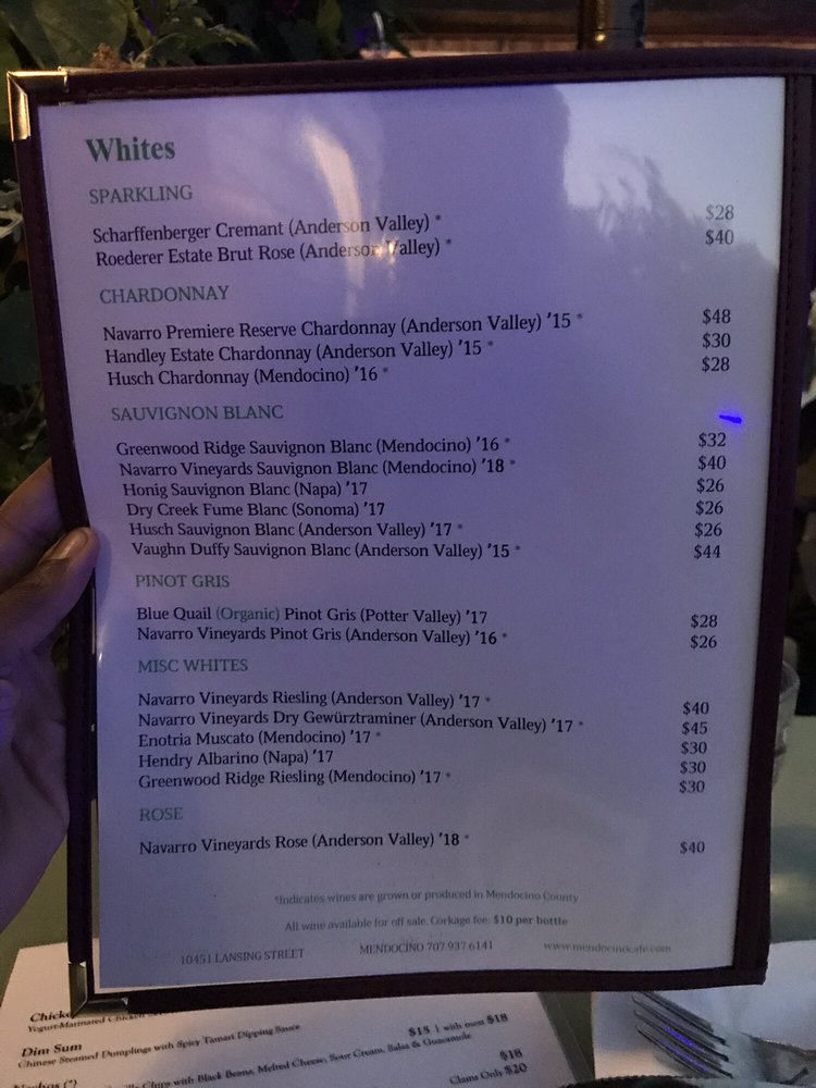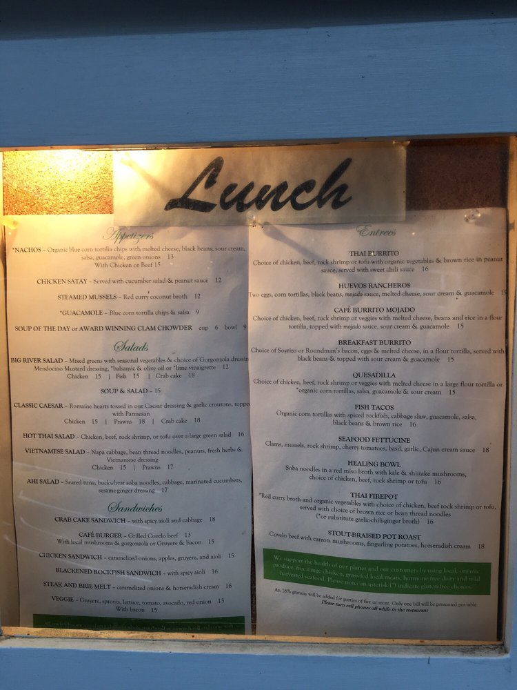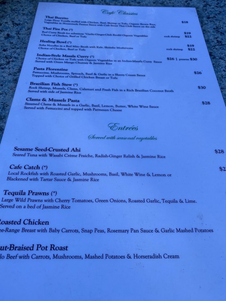 Mendocino Cafe, located in Mendocino, CA, is a charming wine bar and cafe offering a variety of seafood dishes. The menu includes sautéed calamari, clam chowder, local rockfish, Thai firepot, chicken kabob, and crab cake sandwich. Customers rave about the fresh and flavorful ingredients used in each dish. The cozy outdoor seating area, covered and heated for comfort, adds to the overall dining experience. Customer reviews highlight the attentive and friendly service provided by the staff. With options for vegan and limited vegetarian diets, Mendocino Cafe caters to a diverse range of tastes. Don't miss out on their delicious carrot cake or special desserts to top off your meal. Visit Mendocino Cafe for a relaxing and satisfying dining experience in a welcoming atmosphere.
